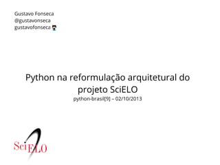 1. 1. Python na reformulação arquitetural do projeto SciELO python-brasil[9] – 02/10/2013 Gustavo Fonseca @gustavonseca gustavofonseca