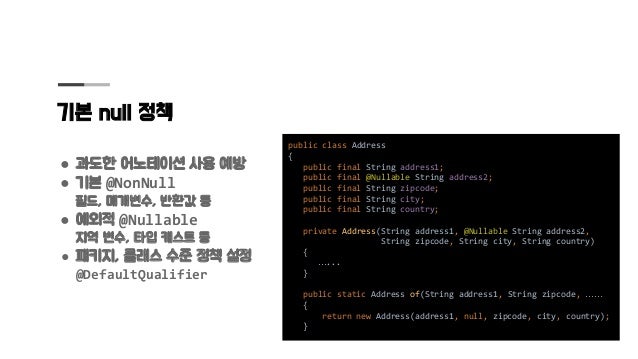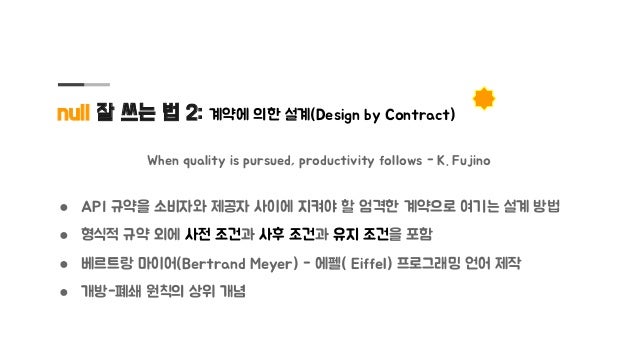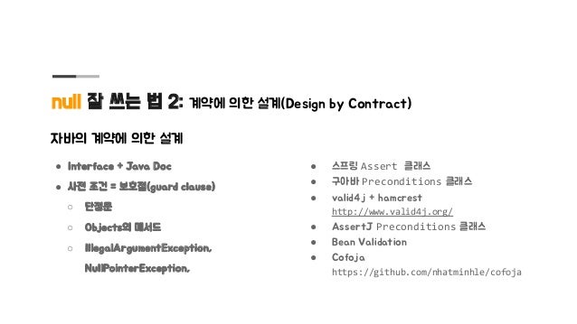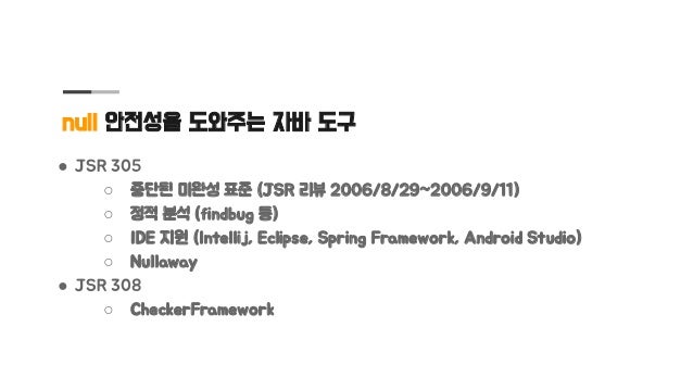 자바에서도 null을 잘 다루어야 소프트웨어 결함을 줄이고 견고하게 만들 수 있는데 null의 위협에서 코드를 안전하게 지키는 설계 지침을 정리하고 안전하다고 확인하는데 도움이 되는 도구를 소개합니다.