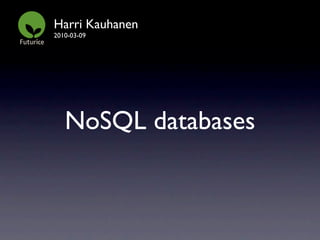 A little disclaimer: I personally have real-life experience with only one NoSQL database called CouchDB. I use CouchDB at my Haukut.fi service.