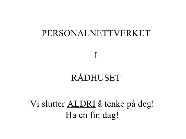 5. 5. Vi slutter ALDRI å tenke på deg! Ha en fin dag! PERSONALNETTVERKET I RÅDHUSET