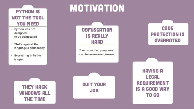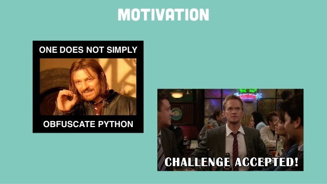 7. 7. ONE DOES NOT SIMPLY OBFUSCATE PYTHON Motivation