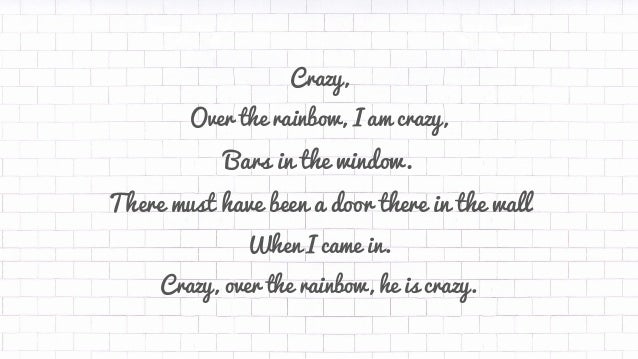 6. 6. Crazy, Over the rainbow, I am crazy, Bars in the window. There must have been a door there in the wall When I came in. Crazy, over the rainbow, he is crazy.