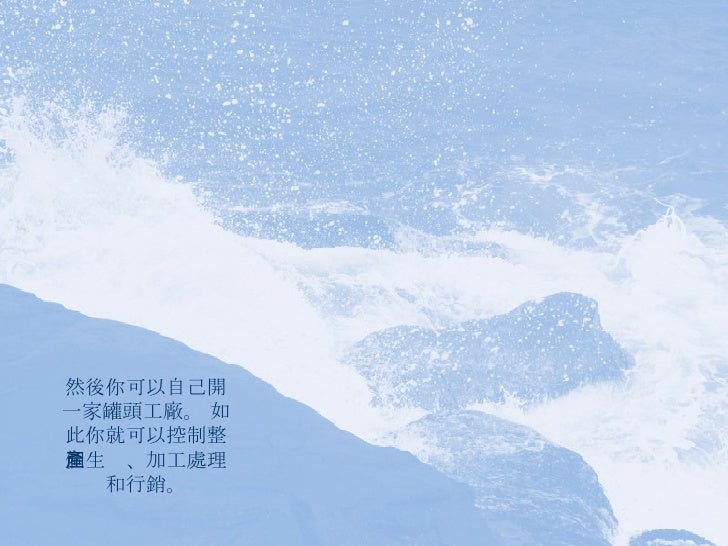 10. 10. 然後你可以自己開一家罐頭工廠。 如此你就可以控制整個生產、加工處理和行銷。