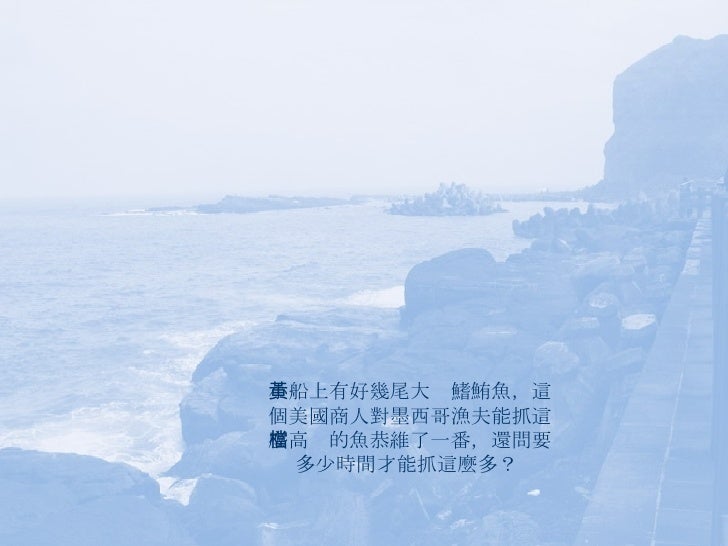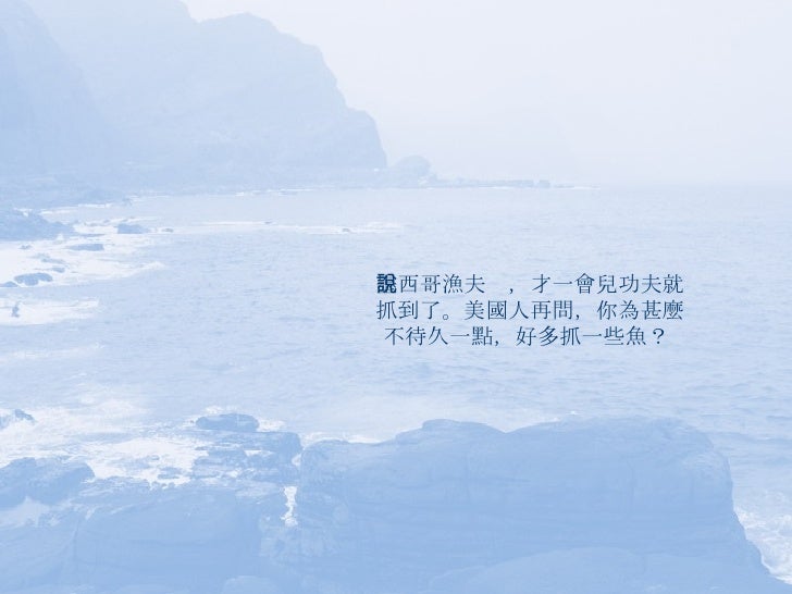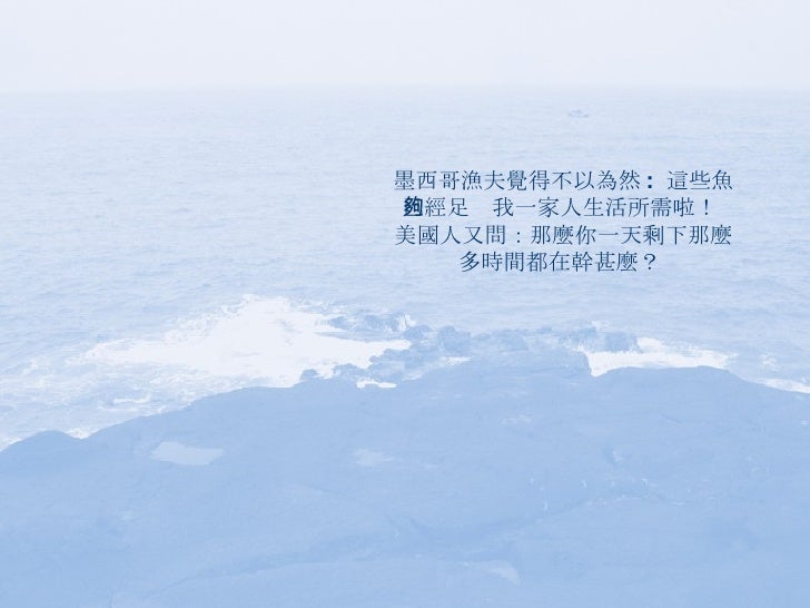 15. 15. 墨西哥漁夫疑惑的說:我現在不就是這樣了嗎?