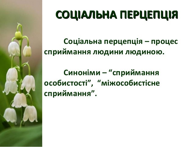 18. 18. СОЦІАЛЬНА ПЕРЦЕПЦІЯСОЦІАЛЬНА ПЕРЦЕПЦІЯ Соціальна перцепція – процес сприймання людини людиною. Синоніми – “сприймання особистості”, “міжособистісне сприймання”.