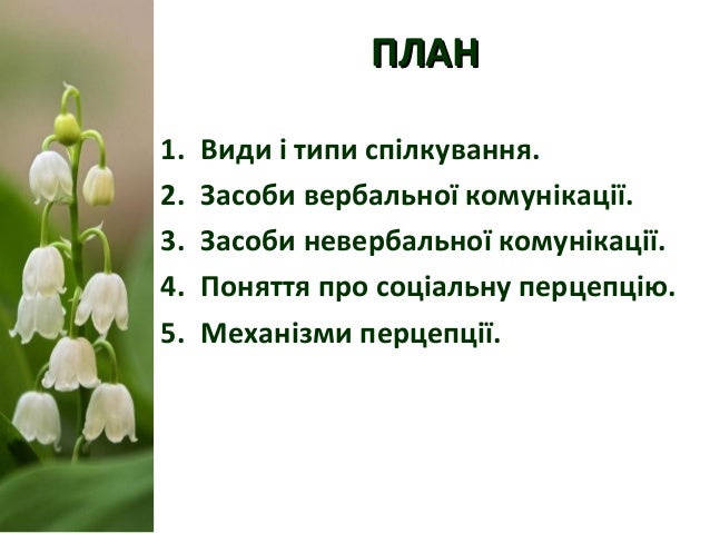 2. 2. ПЛАНПЛАН 1. Види і типи спілкування. 2. Засоби вербальної комунікації. 3. Засоби невербальної комунікації. 4. Поняття про соціальну перцепцію. 5. Механізми перцепції.
