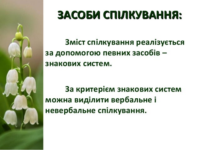 8. 8. ЗАСОБИ СПІЛКУВАННЯ:ЗАСОБИ СПІЛКУВАННЯ: Зміст спілкування реалізується за допомогою певних засобів – знакових систем. За критерієм знакових систем можна виділити вербальне і невербальне спілкування.