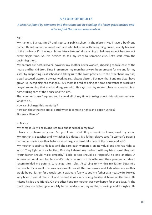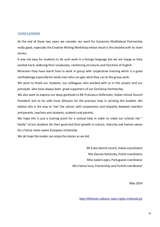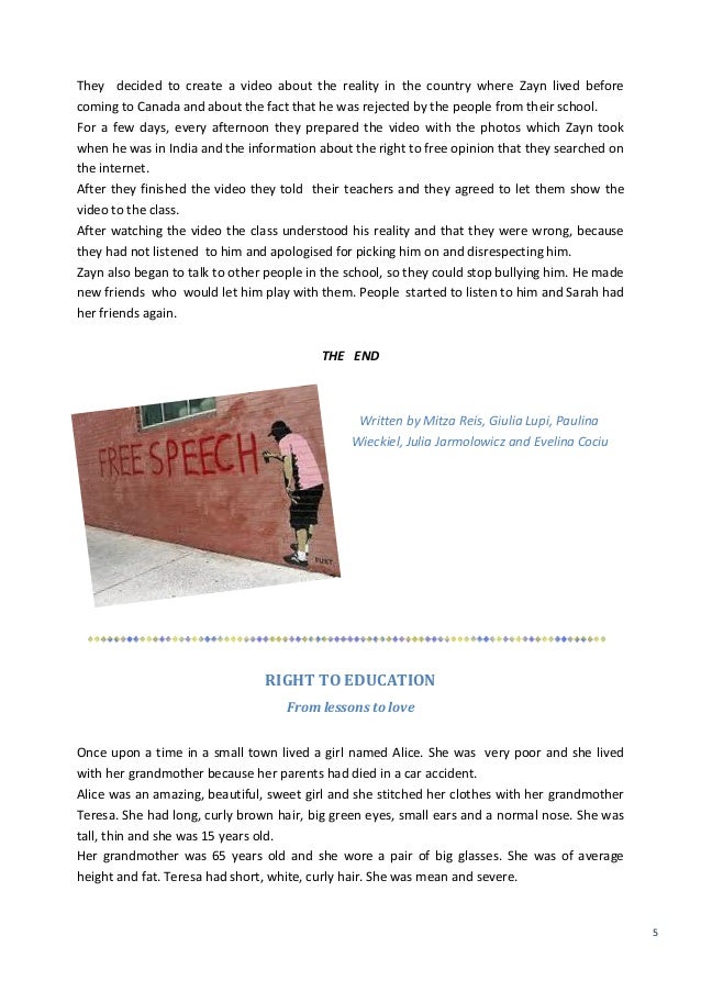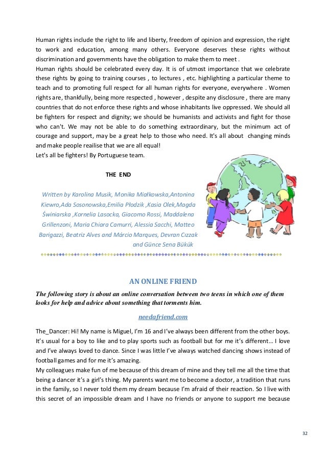 Stories on Children's Rights were writen together by Portuguese, Italian, Turquish and Polish students to the Comenius Project: "Different cultures, different ideas, the same human rights in the voice of young students".