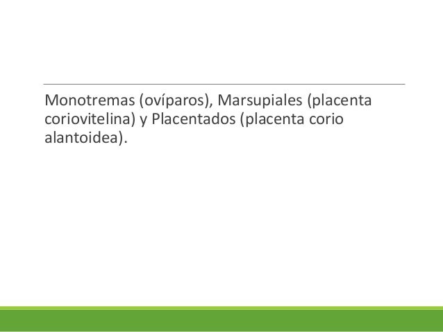 23. 23. Monotremas (ovíparos), Marsupiales (placenta coriovitelina) y Placentados (placenta corio alantoidea).