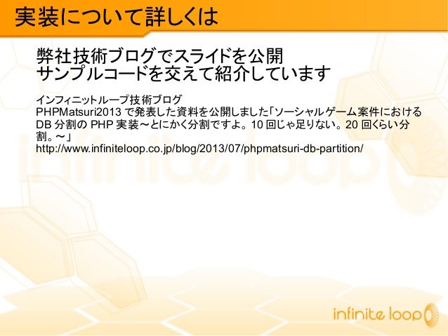 OSC 2013 Hokkaidoで発表された「PHP+MySQLを使ったスケーラブルなソーシャルゲーム開発」のスライド資料です。