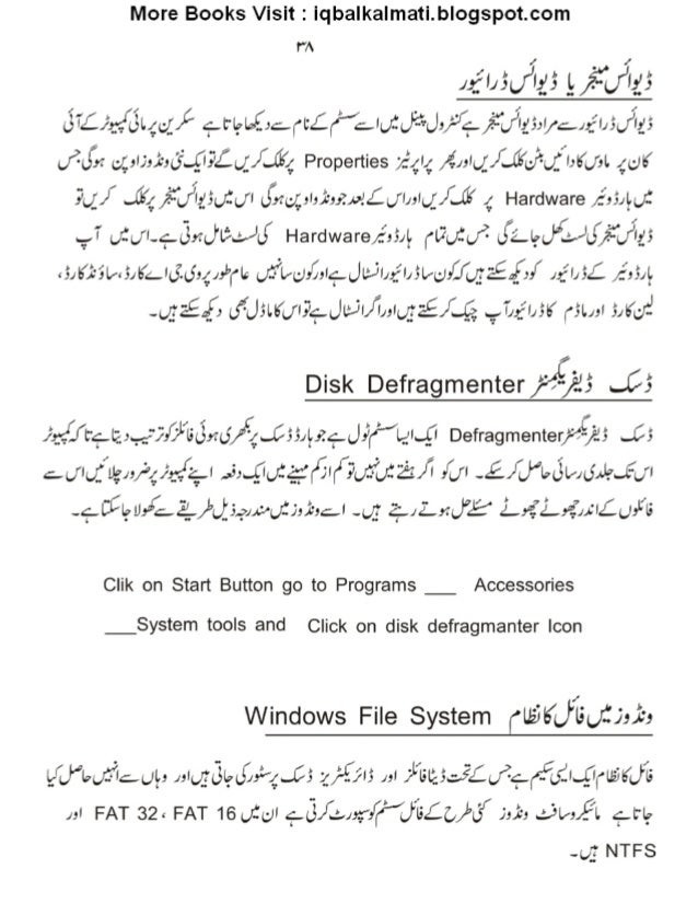 39. 39. More Books Visit : iqbalkalmati. blogspot. com ». =I. ;J7z5 Ii°~“u”7z3 37Lx3_{§I.4.~g/ ‘ .7.rIgIe§: ¢yc£fi’; Id: JizJ, ;9;j{flg5;y; .gI,5.flg; fix c/ ,_, :|J: i': (_3’. ... _Q§Z({/ .32 Properties x? /_. _|4 flzslq/ ..a3(_-J"-u__'/ l:K(J': l. 40? ? (J__/ .55/7/:4-’u’7I; .’3uZ(/ I I, $:qg, :l: £': £,v! cCJl; :lQ_'/ .6’ 4 Hardware /5:5/tut .77 u. ’1(jl-‘¢8xJl: '>. .*/ 'I_$/ Hardware/ .1334 (Uuftf (, (Ll.9(}¢f_‘»JL5// :“"(JJ/ ‘£5 :31;-512:3/Ku(£t5;4»b(I; (;5’L«(-; :C; g¢JuJI»_‘I/3I4yJ: I’u32Eef: / J. f’J§£ /5,54 -u3aE. f; L)"U5l. K(fl? <". JttJl/ fl/ :l(j__7£/ r.. «_é . .?. I'/ ;_«’I;5K (31131 M191’ l“’A Disk Defragmenter%~(/ _*’°. .5’ .55 / ‘.; v,f. l/t"¢t22%}/ }’G8nd/ QJ55/tzgdif/ QICQ Defragmenterflg/ '25 J5 agjluf/ Ug/5/3/_. _/. ;r, {§. | . .5:. .gu: gfi3Ifl’? Oii): z‘: //I fw -£/ J‘Ie(3I«/ (5JJ. a.€w -+¢I_au, a2Z1_/ =I)_5.; m(; :;;1~; ;—_I J13 2;. /2“_xJ’£ a'_y; ’2’_, »;’J; I£w*’I; Clik on Start Button go to Programs _ Accessories _System tools and Click on disk defragmanter Icon Windows File System Clb‘JKIf5Qf. 'J: ,‘L°: I[_)’Ip. /5’I. :.uI, J, I._; _:(_"$eI_£; ~4.. .C5 -4 j-£315 J3’ / 'L’t§l2,5J£u)~‘¢(T-cfil. ... l?{’Ua'5KJ/ ti J! ’ FAT 32. FAT 16 utuv ‘E13/_~. »;~/ ("J1s£z, /1'5’ 2,; -I . JI«, )?’I are -g_. ~ NTFS