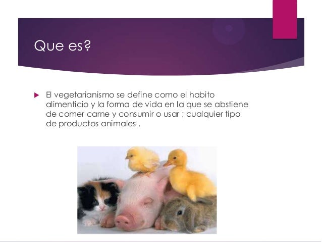 2. 2. Que es?  El vegetarianismo se define como el habito alimenticio y la forma de vida en la que se abstiene de comer carne y consumir o usar ; cualquier tipo de productos animales .