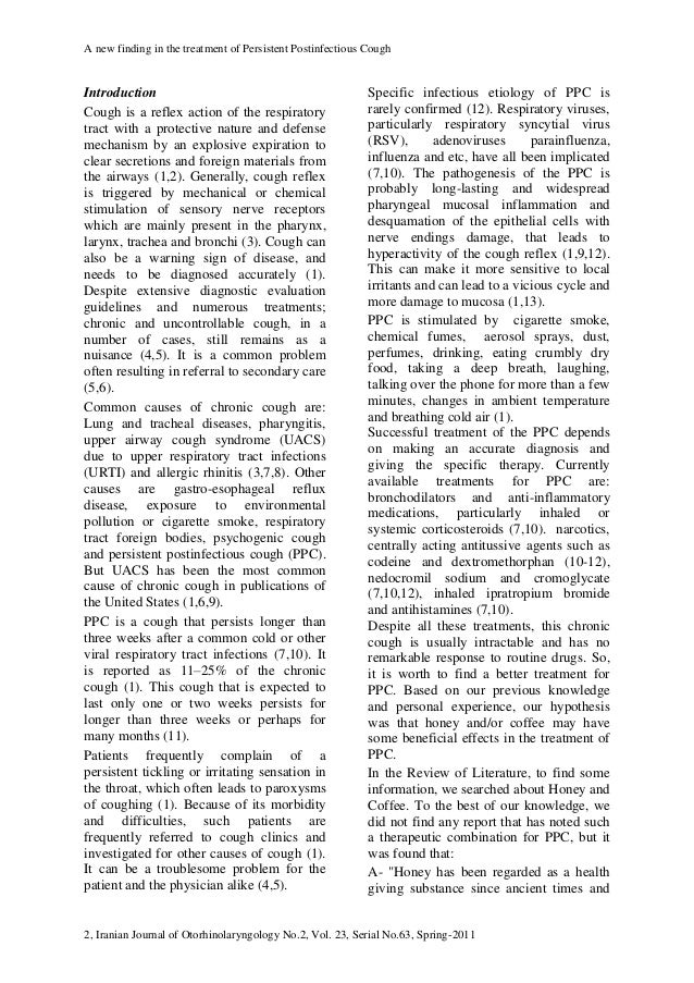 experienced PPC (persistent post-infectious coughs) longer than 3 weeks. All of them had the history of several referrals to different physicians and despite treatment, their cough had persisted.