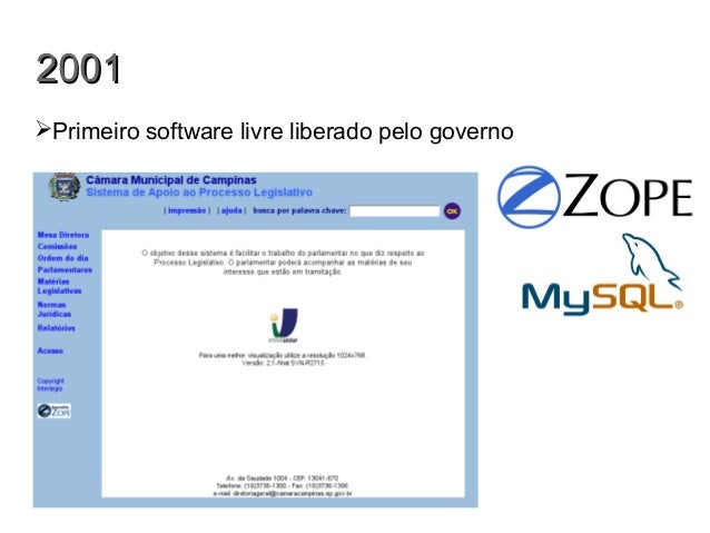 6. 6. 20012001 ➢Primeiro software livre liberado pelo governo