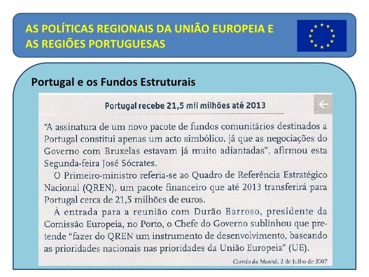 26. 27. AS POLÍTICAS REGIONAIS DA UNIÃO EUROPEIA E AS REGIÕES PORTUGUESAS