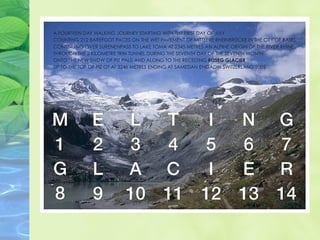 This document provides information about the British conceptual artist and photographer Hamish Foulton and his work documenting walking journeys. Foulton bases his artwork on journeys he takes on foot, visually recording them through words, photos, and symbols representing things he sees along the way like skylines, numbers of steps climbed, heights of mountains, and wildlife. The document instructs the reader to analyze 4 of Foulton's images, then create and analyze their own photos documenting details from 6 daily journeys, including dates, times, transportation methods, songs listened to, symbols seen, and unusual details.