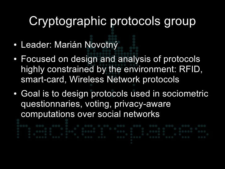 10. 10. Cryptographic protocols group ● Leader: Marián Novotný ● Focused on design and analysis of protocols highly constrained by the environment: RFID, smart-card, Wireless Network protocols ● Goal is to design protocols used in sociometric questionnaries, voting, privacy-aware computations over social networks