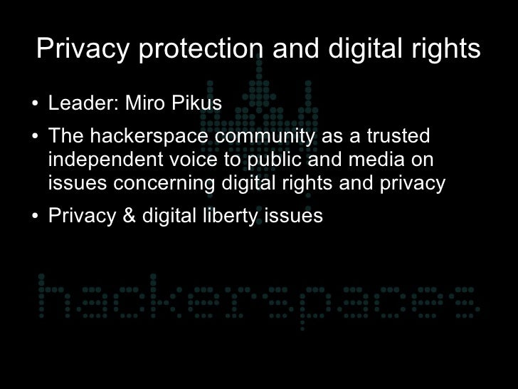 15. 15. Privacy protection and digital rights ● Leader: Miro Pikus ● The hackerspace community as a trusted independent voice to public and media on issues concerning digital rights and privacy ● Privacy & digital liberty issues