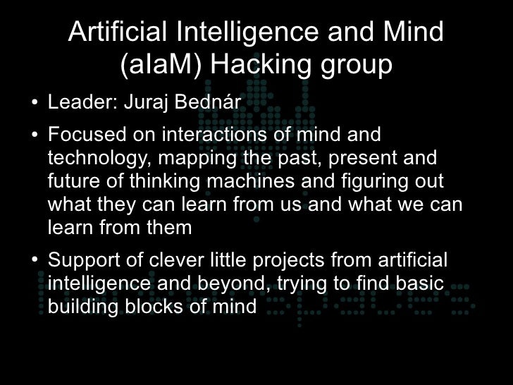 9. 9. Artificial Intelligence and Mind (aIaM) Hacking group ● Leader: Juraj Bednár ● Focused on interactions of mind and technology, mapping the past, present and future of thinking machines and figuring out what they can learn from us and what we can learn from them ● Support of clever little projects from artificial intelligence and beyond, trying to find basic building blocks of mind