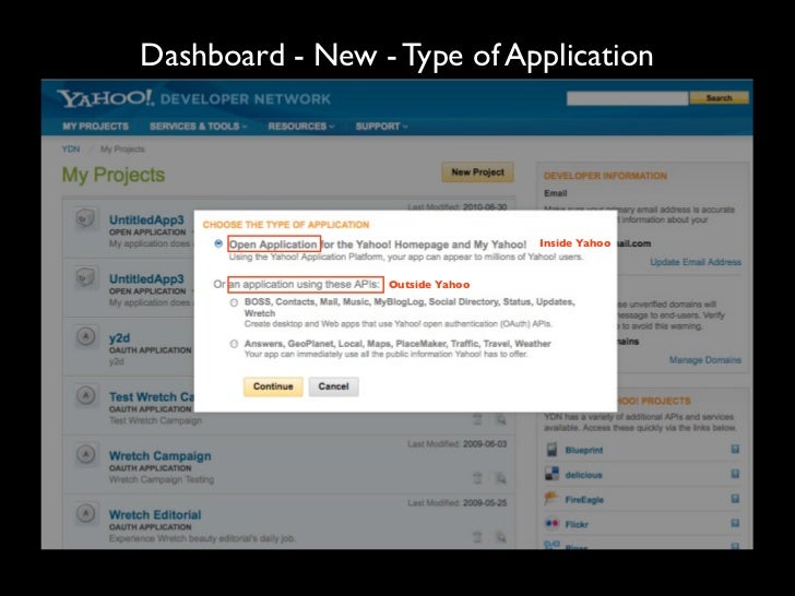 10. 10. Dashboard - New - Type of Application Inside Yahoo Outside Yahoo