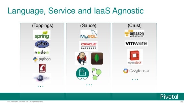 28. 28. 28© 2014 Pivotal Software, Inc. All rights reserved. Language, Service and IaaS Agnostic …… … (Crust)(Sauce)(Toppings)