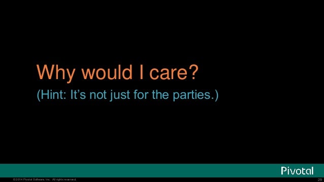 29. 29. 29© 2014 Pivotal Software, Inc. All rights reserved. 29© 2014 Pivotal Software, Inc. All rights reserved. Why would I care? (Hint: It’s not just for the parties.)