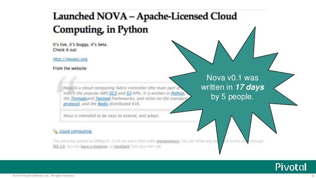 4. 4. 4© 2014 Pivotal Software, Inc. All rights reserved. Nova v0.1 was written in 17 days by 5 people.
