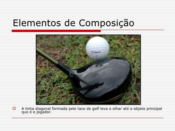 10. 10. Elementos de Composição <ul><li>A linha diagonal formada pelo taco de golf leva o olhar até o objeto principal que é o jogador. </li></ul>