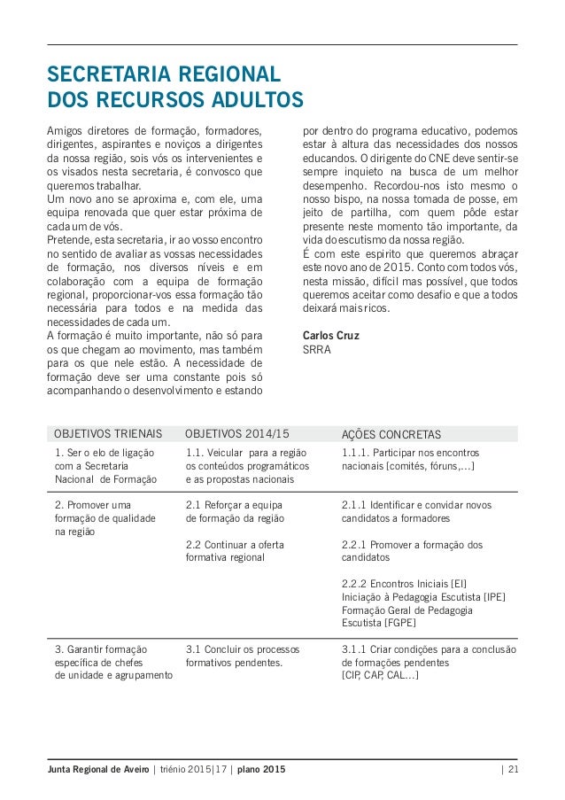 Plano Regional da Região de Aveiro do Corpo Nacional de Escutas - Escutismo Católico Português.