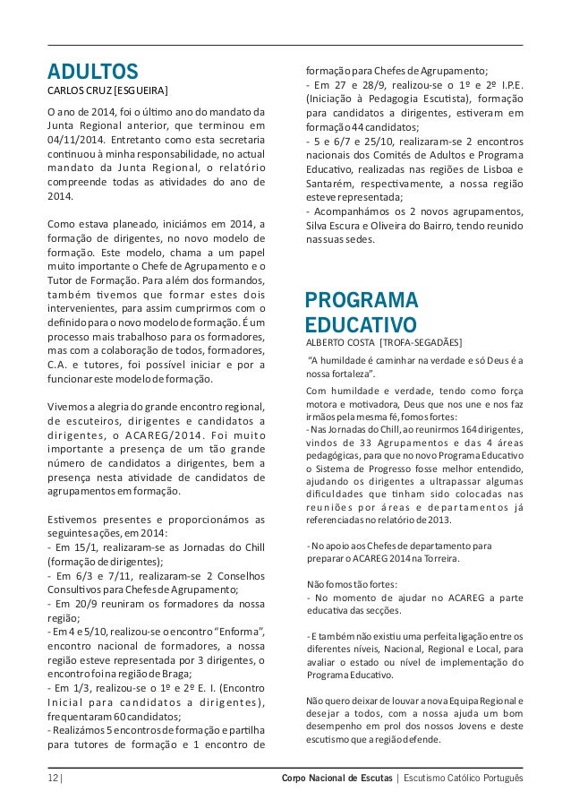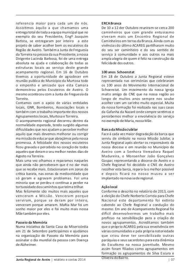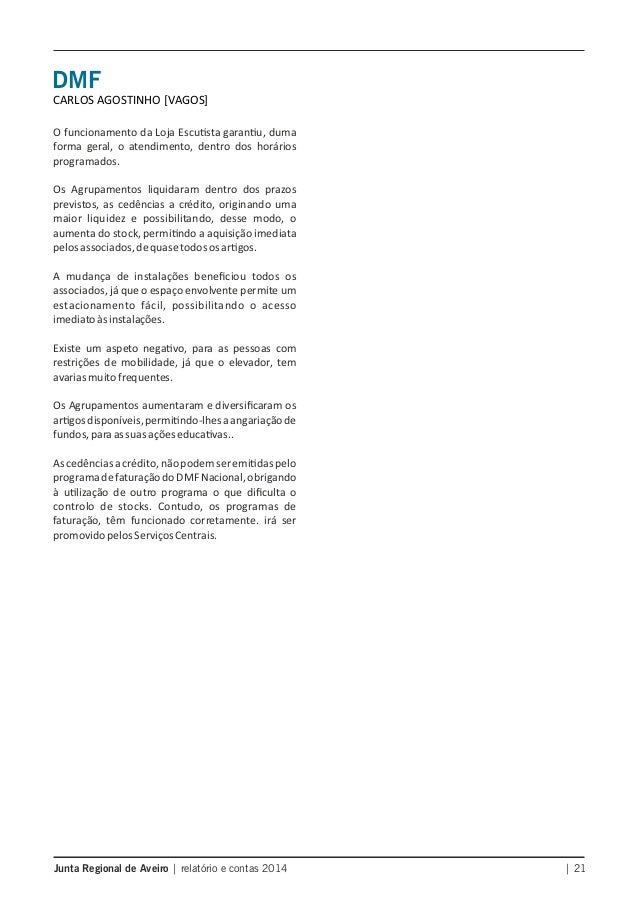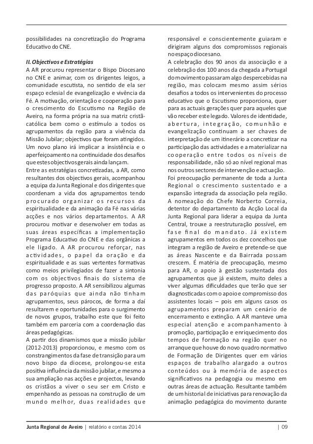 Documento que contém o relatório e contas da atividade da junta regional para o ano de 2014