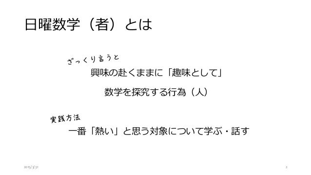 「第2回 プログラマのための数学勉強会」で @tsujimotter が発表したスライドです。