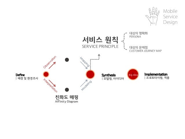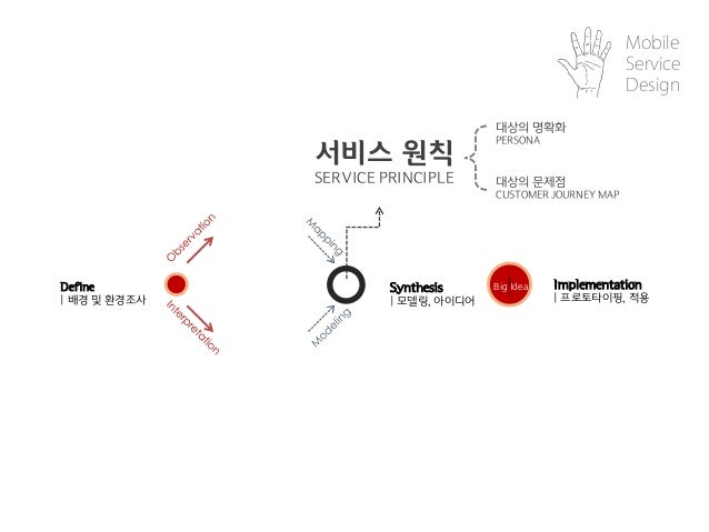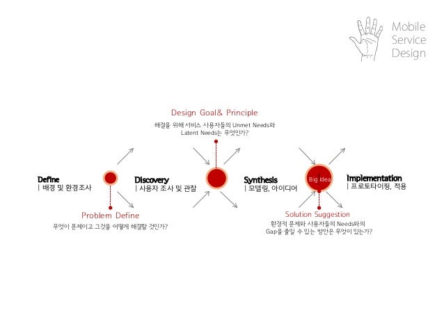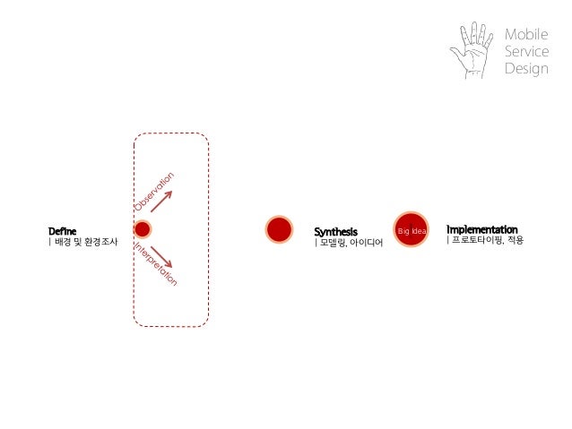 5. 5. Mobile Service Design Define | 배경 및 환경조사 Discovery | 사용자 조사 및 관찰 Synthesis | 모델링, 아이디어 Implementation | 프로토타이핑, 적용 !Big Idea