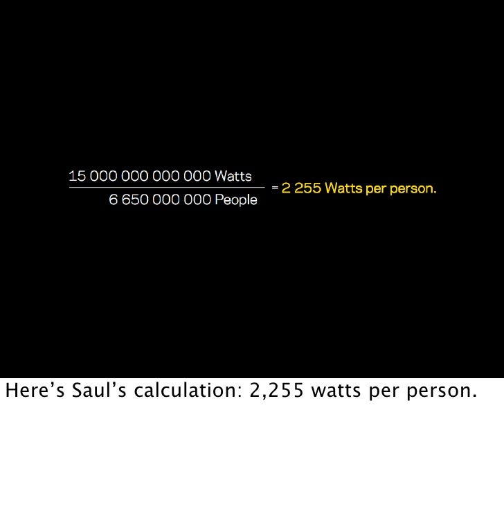 Here’s Saul’s calculation: 2,255 watts per person.