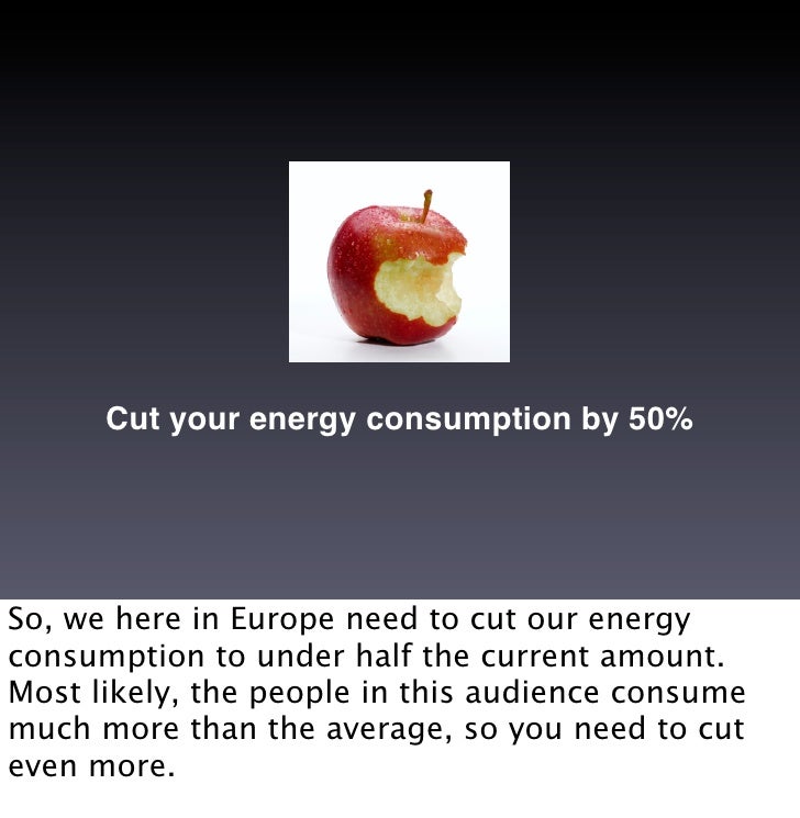 14. 14. Cut your energy consumption by 50% So, we here in Europe need to cut our energy consumption to under half the current amount. Most likely, the people in this audience consume much more than the average, so you need to cut even more.