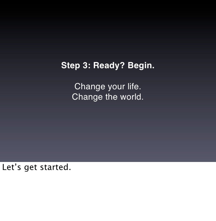 15. 15. Step 3: Ready? Begin. Change your life. Change the world. Let’s get started.