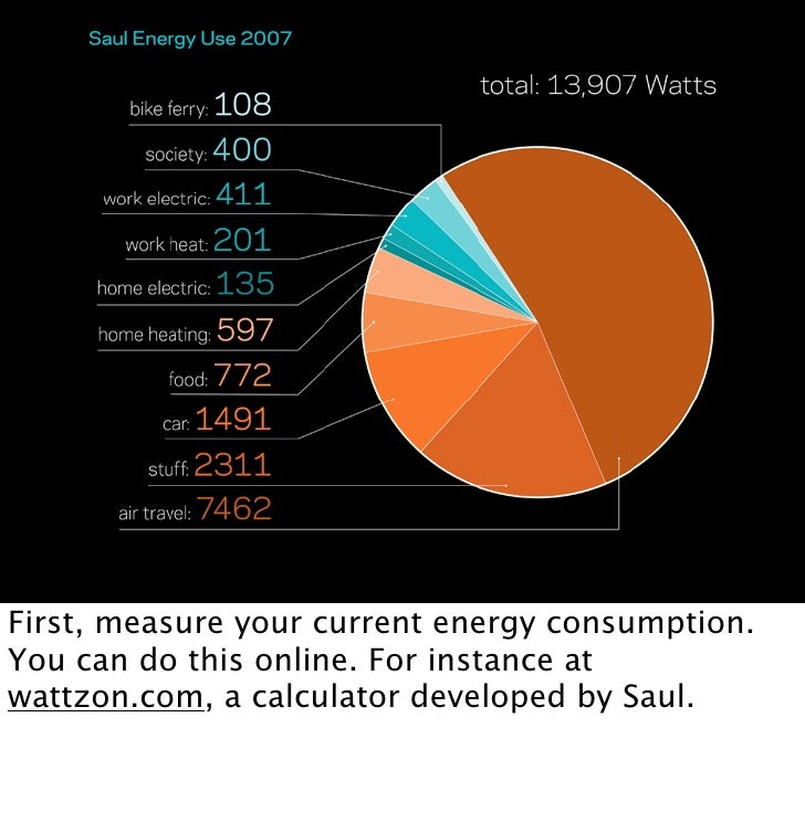 16. 16. First, measure your current energy consumption. You can do this online. For instance at wattzon.com, a calculator developed by Saul.