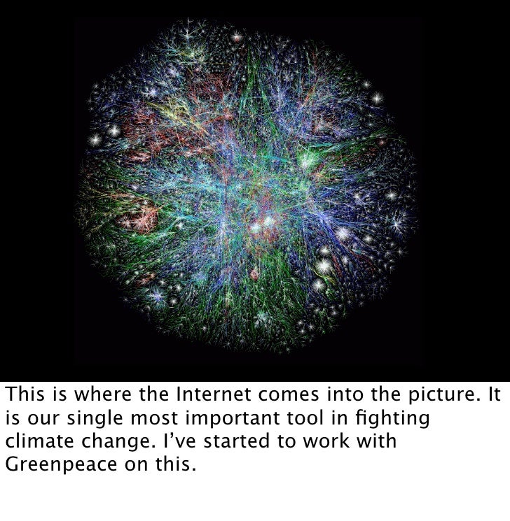 23. 23. This is where the Internet comes into the picture. It is our single most important tool in fighting climate change. I’ve started to work with Greenpeace on this.