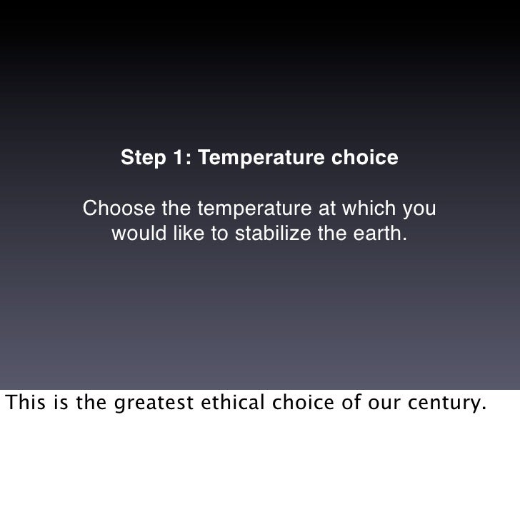 6. 6. Step 1: Temperature choice Choose the temperature at which you would like to stabilize the earth. This is the greatest ethical choice of our century.