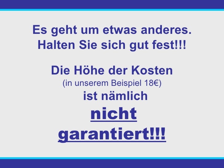 16. 17. Es geht um etwas anderes. Halten Sie sich gut fest!!! Die Höhe der Kosten (in unserem Beispiel 18€) ist nämlich nicht garantiert!!!