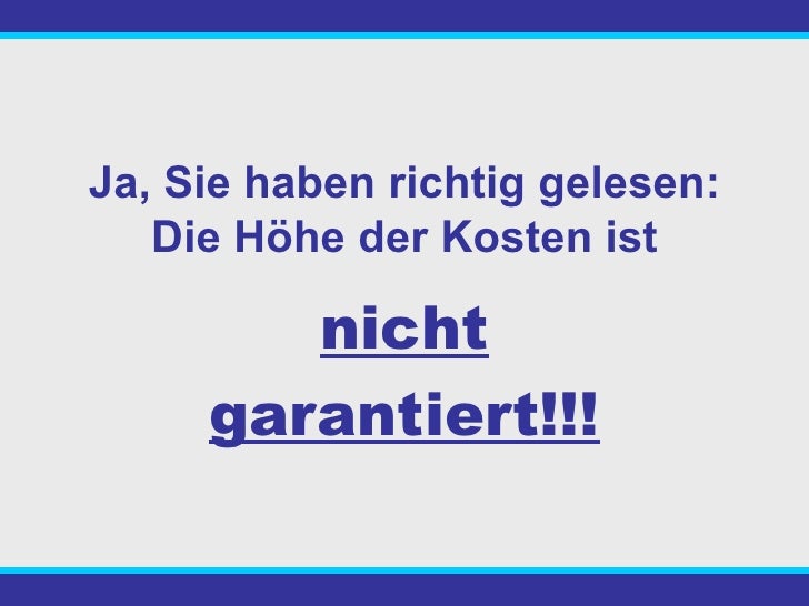 17. 18. Ja, Sie haben richtig gelesen: Die Höhe der Kosten ist nicht garantiert!!!