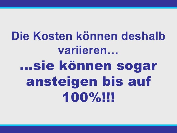 18. 19. Die Kosten können deshalb variieren… … sie können sogar ansteigen bis auf 100%!!!