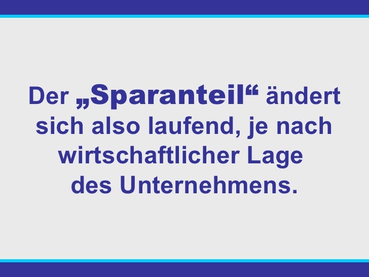19. 20. Der „Sparanteil“ ändert sich also laufend, je nach wirtschaftlicher Lage des Unternehmens.