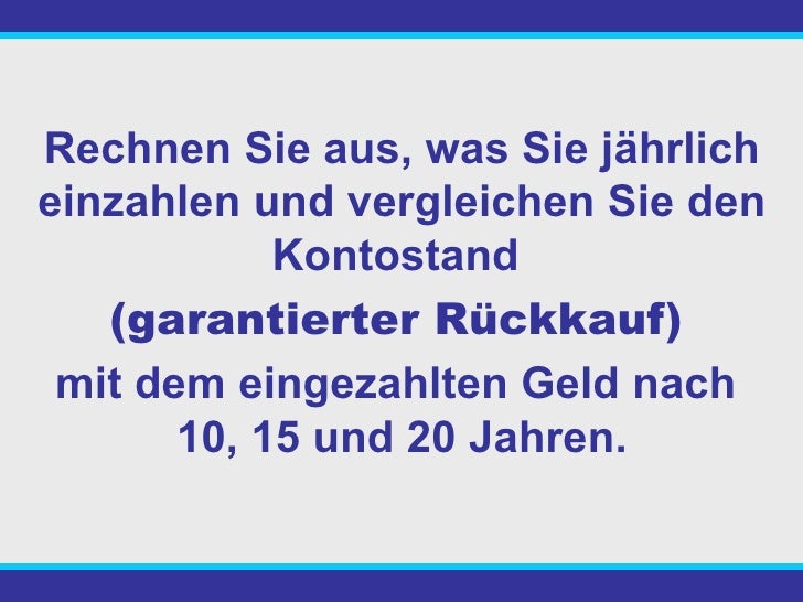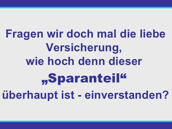 25. 26. Fragen wir doch mal die liebe Versicherung, wie hoch denn dieser „ Sparanteil“ überhaupt ist - einverstanden?