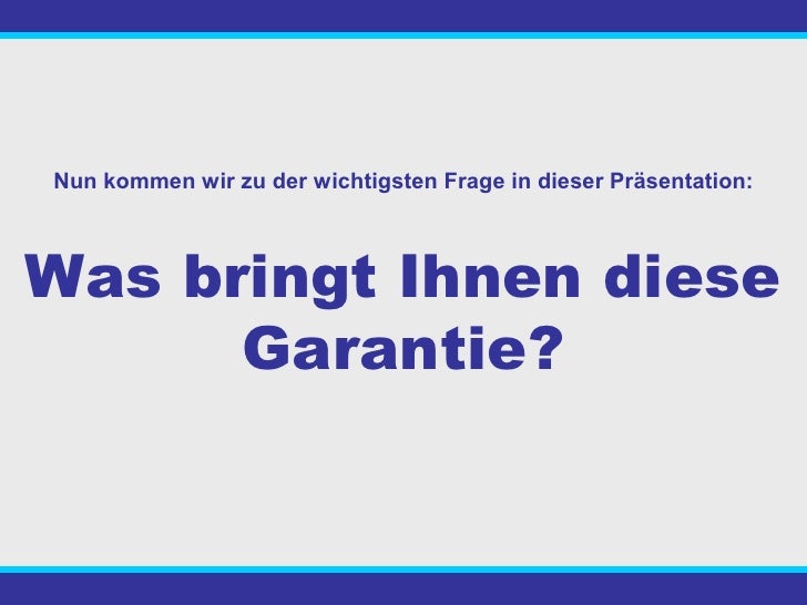 30. 31. Was bringt Ihnen diese Garantie? Nun kommen wir zu der wichtigsten Frage in dieser Präsentation: