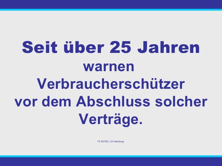 46. 49. Seit über 25 Jahren warnen Verbraucherschützer vor dem Abschluss solcher Verträge. 74 047/83, LG Hamburg