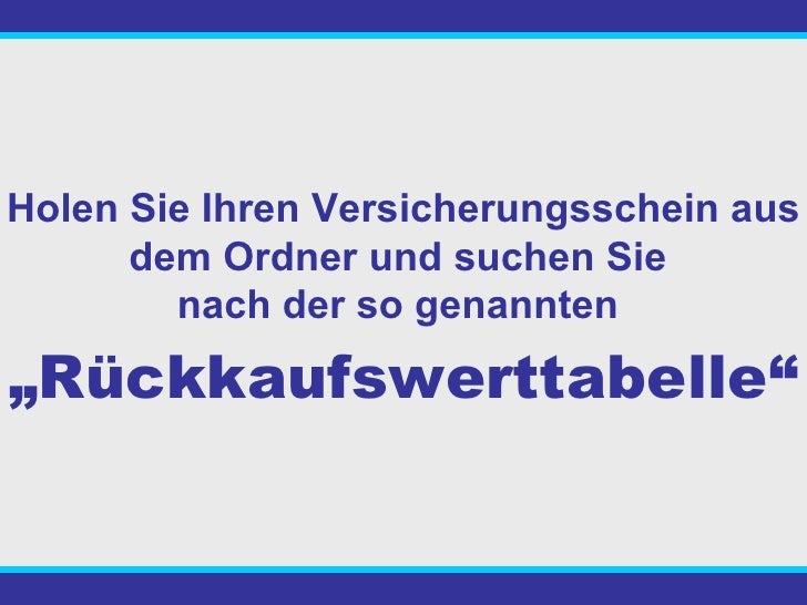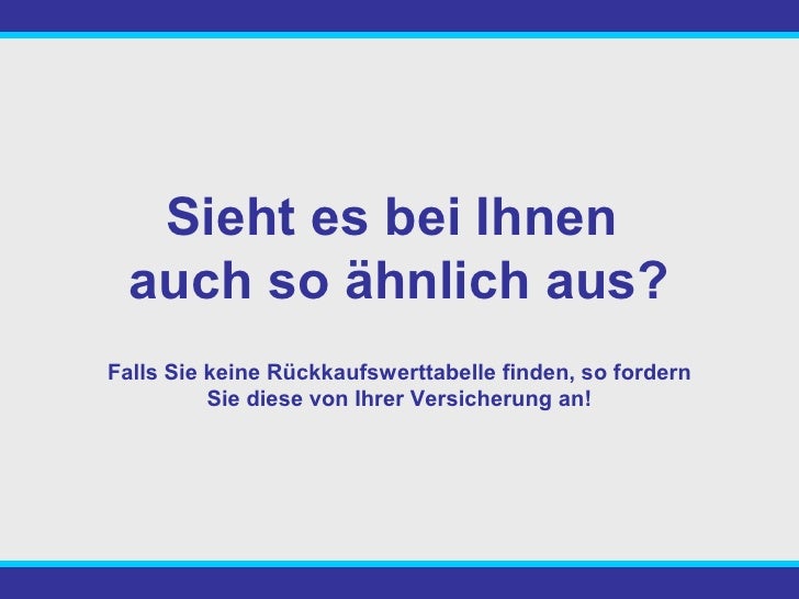55. 58. Sieht es bei Ihnen auch so ähnlich aus? Falls Sie keine Rückkaufswerttabelle finden, so fordern Sie diese von Ihrer Versicherung an!