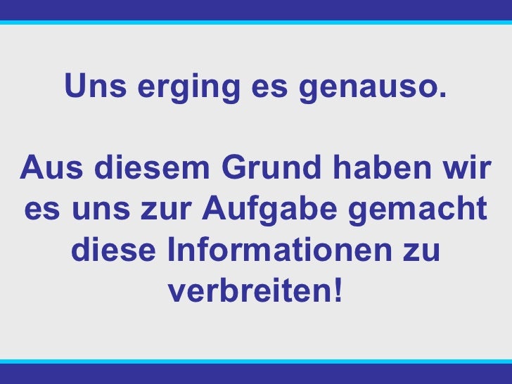 59. 62. Uns erging es genauso. Aus diesem Grund haben wir es uns zur Aufgabe gemacht diese Informationen zu verbreiten!