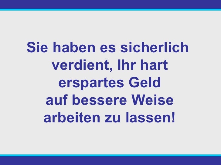 62. 65. Sie haben es sicherlich verdient, Ihr hart erspartes Geld auf bessere Weise arbeiten zu lassen!