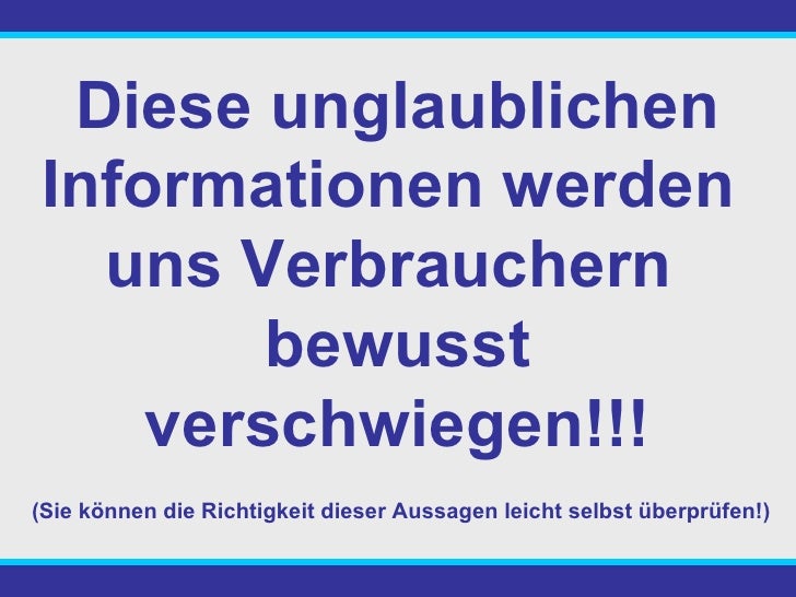 1. 1. Sie halten eine Information in Ihren Händen, die Sie in dieser Form sicherlich noch nie gehört haben. Es ist sehr weitsichtig, diese Verbraucherinformation zu lesen. Lieber Leser!