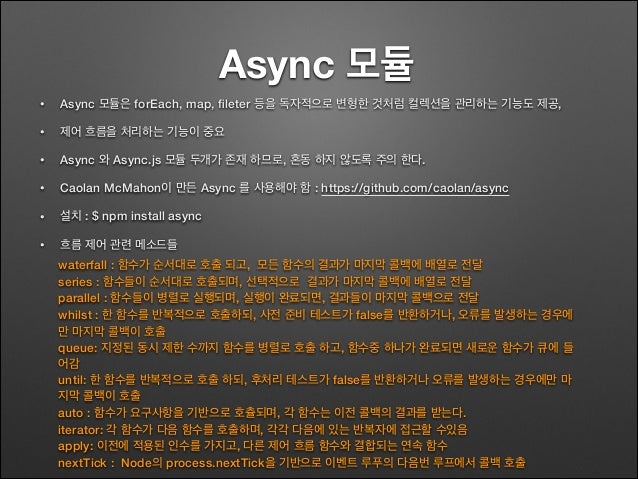 이전 업데이트와 다르게 비동기 모듈, express, heroku 설치, 디버깅 방법이 추가되었습니다.